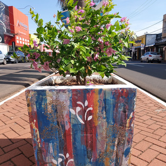Artistas presenteiam a Avenida Francisco Jalles com pinturas exclusivas em vasos ornamentais